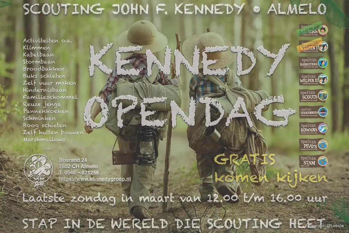 De Kennedydoedag wordt op 29 maart van 12.00 uur tot 16.00 uur gehouden op het terrein van scoutinggroep J.F. Kennedy aan de Bosrand 24 in Almelo.