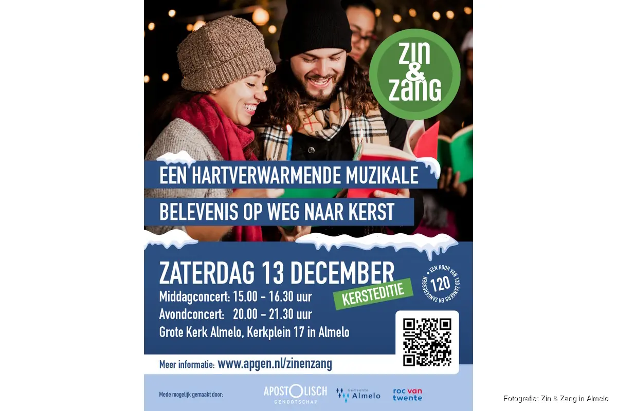 De optredens op 13 december duren ongeveer anderhalf uur. Een middagconcert van 15.00 – 16.30 uur en een avondconcert van 20.00 – 21.30 uur. Tickets kosten € 15,- en zijn te koop via https://www.apgen.nl/zinenzang.